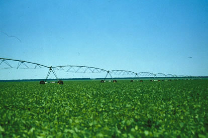 Irrigação [pron. e]da plantação de soja no cerrado perto de Minérios (GO).